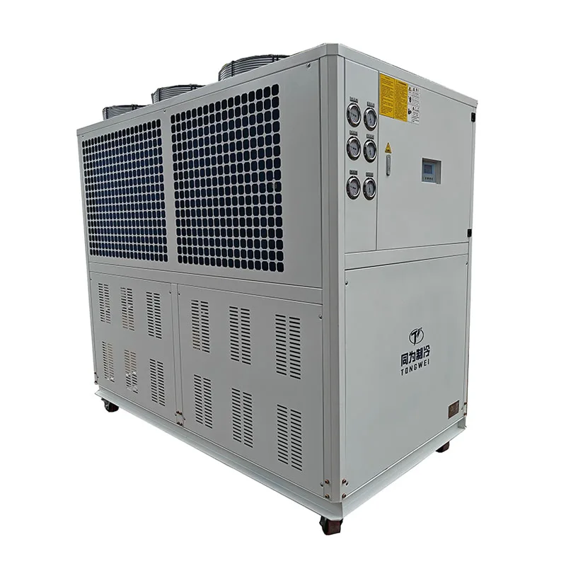 If you are looking for air cooled packaged scroll chillers fully assembled in our Tongwei factory in China, then this is the best design for your plastic industry,chemical, food, or beverage industry applications.