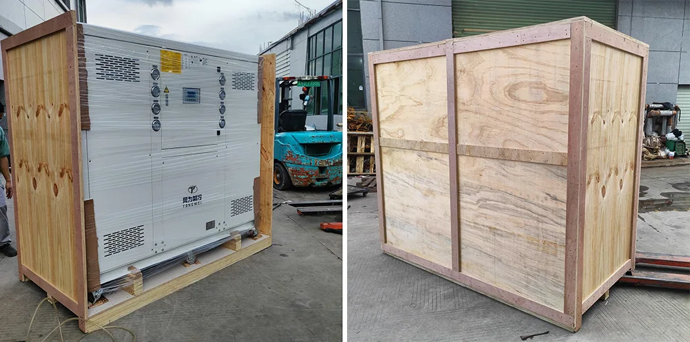 1. Ship by Air: As the chiller is with compressor ,water pump and fans ,the compressed refrigerant and oil inside the compressor is a dangerous item with the possibility of explosion , so it needs to release the compressed refrigerant before transportation. (It means that water chiller without refrigerant when choosing this shipping way. After the machine arrives at your destination, you need to add refrigerant by local professionals. The airline company also request us to provide many documents to prove that the chiller not a dangerous product. The freight cost by air is very high may be higher than the cost of chiller , So By air for delivery is not the mode of transport recommended to our customer.