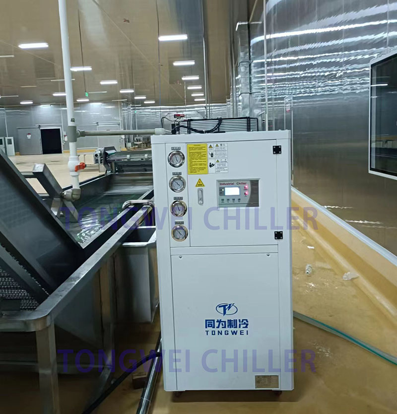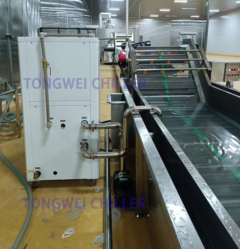 Tongwei’s industrial air-cooled chiller offers energy efficiency, low maintenance, and reliable operation, making it an ideal solution for food factories requiring stable and hygienic cooling.